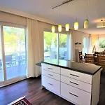 Также из комнаты можно выйти на патио и оснащённой всем необходимым кухней со всей необходимой кухонной утварью. Гости могут воспользоваться 4 ванными комнатами.